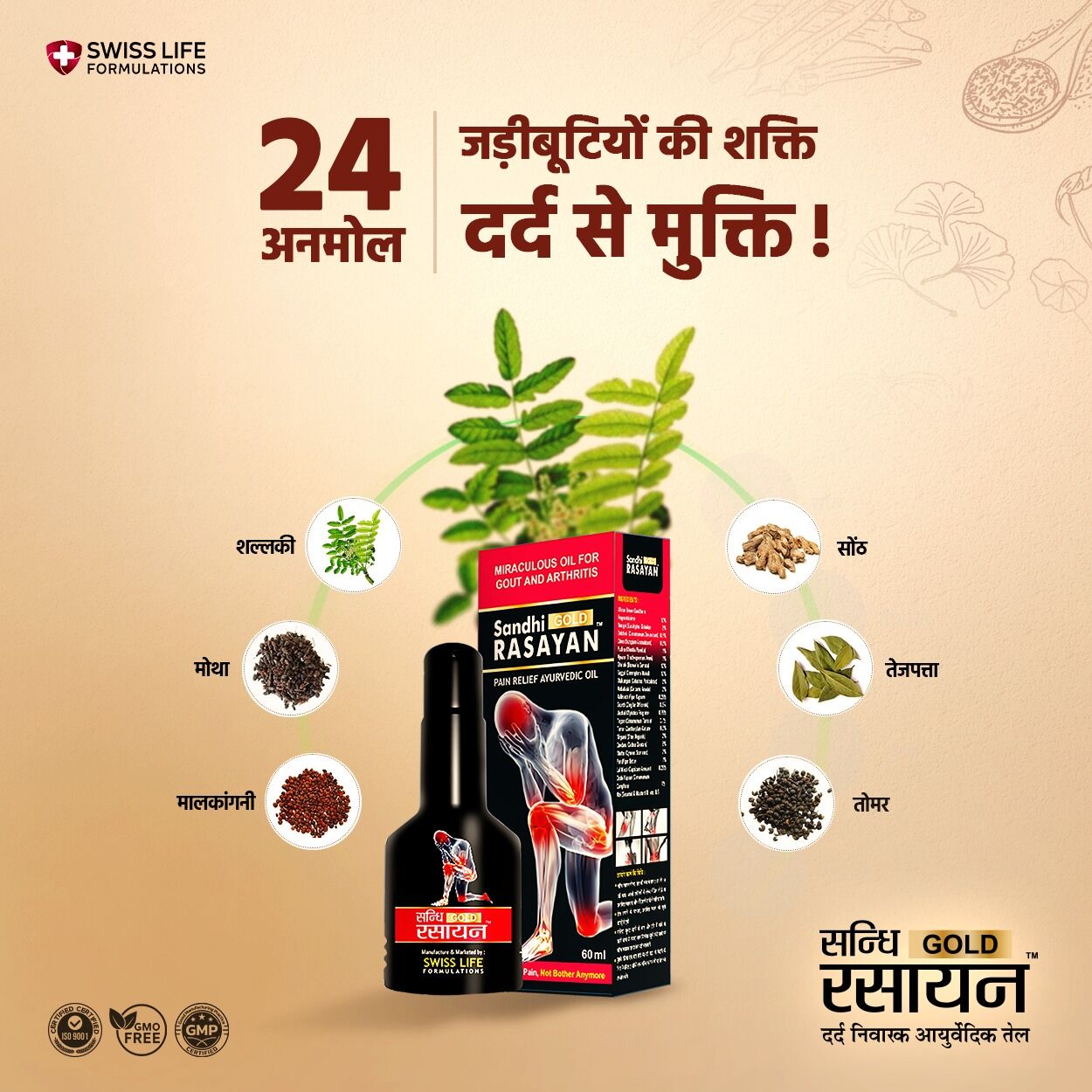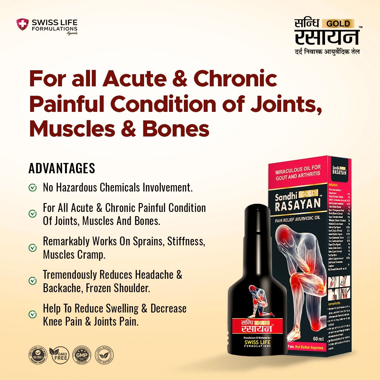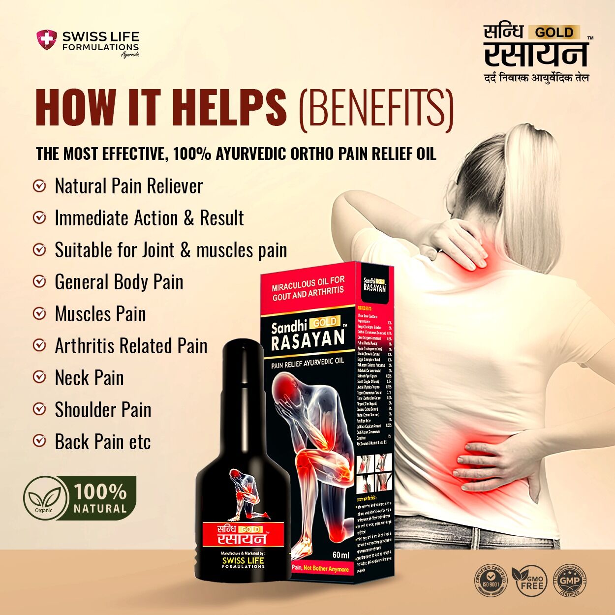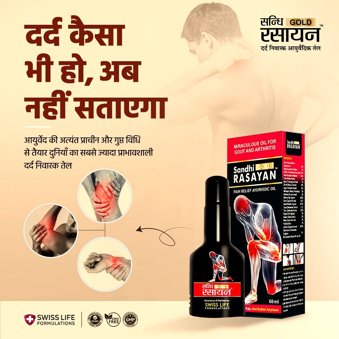 Sandhi Rasayan Gold Ortho pain oil is very effective for pain, sprain, gout and arthritis. If you have pain and stiffness in the neck that comes on quickly, possibly overnight, and you have difficulty lifting both arms over your head, this could be a sign of a condition called polymyalgia rheumatica (PMR). This is an inflammatory condition of the muscles. Neck stiffness, stiff neck and nuchal rigidity are terms often used interchangeably to describe the medical condition when one experiences discomfort or pain when trying to turn, move, or flex the neck. Possible causes include muscle strain or sprain, cervical spine disorders. Sandhi Rasayan Gold Ortho Pain Oil reduces pain of spondylitis – inflammation in spinal bones.